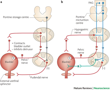 而當膀胱因憋尿而脹大後,膀胱黏膜的血液無法正常的運送導致黏膜無法有效的阻擋細菌的入侵,很容易就造成尿道的發。如果剛好身體免疫力低弱,急性膀胱癌就容易找上門這時候膀胱壁會變得很敏感,所以只要有一點尿液的堆積就可能產生排尿反射(下圖)