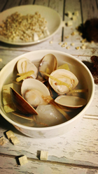 3. 煮滾之後,再用小火煮約10分鐘,然後放入蛤蠣、冬瓜、薏仁、薑絲,再煮10分鐘。